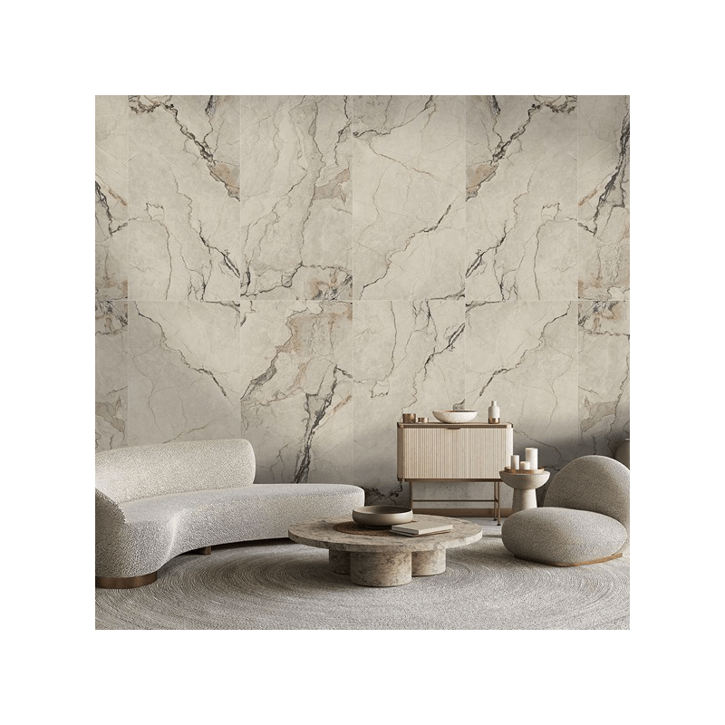 Porcellanato Premium. Presentado en dos superficies: Natural y Pulida. La superficie Natural tiene un tacto suave y una estética sofisticada, los mármoles Pulidos son profundos y majestuosos.
